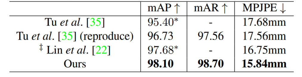 MLP-Baseline과 비교 결과, human detection 정확도와 3D human pose estimation 정확도 면에서 향상되었음