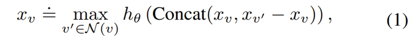 EdgeConv는 graph convolution prediction입니다. 수학적으로 표현하면,