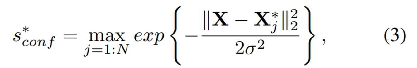 X에 위치한 샘플에 대해, target confidence score은 다음과 같이 계산됩니다