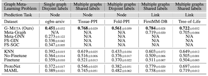 Reference [1] Huang, Kexin, and Marinka Zitnik. "Graph meta learning via local subgraphs." Advances in Neural Information Processing Systems 33 (2020): 5862-5874. [2] Snell, Jake, Kevin Swersky, and Richard Zemel. "Prototypical networks for few-shot learning." Advances in neural information processing systems 30 (2017). [3] Finn, Chelsea, Pieter Abbeel, and Sergey Levine. "Model-agnostic meta-learning for fast adaptation of deep networks." International conference on machine learning. PMLR, 2017.