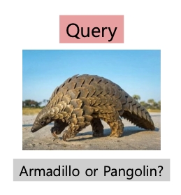 예를 들어, 위와 같이 사람에게 아르마딜로(Armadillo)와 천산갑(Pangolin)의 사진을 각각 2장씩 보여줬다고 생각해보자. 아마 대부분의 사람들은 아르마딜로와 천산갑이 생소할 것이다. 자, 이제 그 사람에게 다음의 사진을 한 장 더 보여주었다.