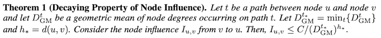Graph Influence loss는 h가 늘어날수록, 즉 노드 간의 거리가 멀어질수록 exponential하게 감소한다.