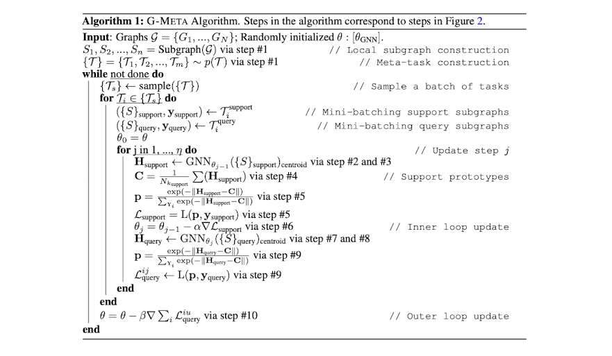 Loss support와는 다르게 각 Task에 대해 GNN을 update하는 것이 아니라, 모든 tasks에 대한 loss를 모두 합한 후에 한 번에 Update 시킨다. 이는 MAML의 학습 방법과 같다. 다른 batch에 속한 tasks들에 대해서도 1)~10)과정을 반복하여 GNN을 학습시킨 후, 학습이 끝난 GNN의 파라미터 는 새로운 task들에 대해서 몇 번의 update만으로도 빠르게 적응할 수 있는 파라미터이다.