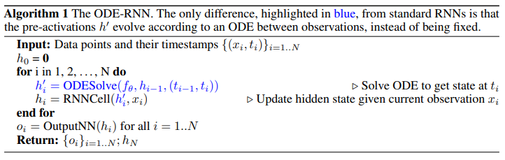 이 논문에서는 hidden state dynamics를 Neural ODE로 구성한 ODE-RNN을 소개했습니다.